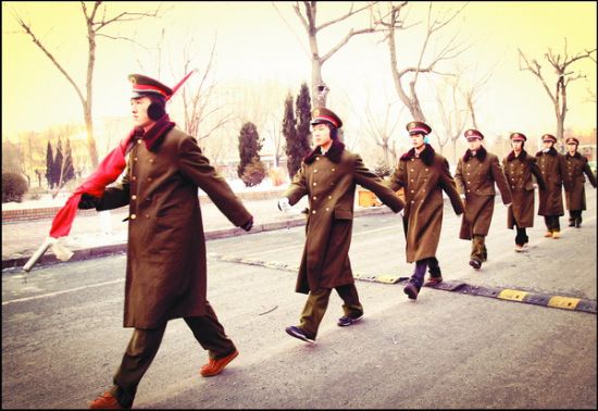 任何奉献都是苦中作乐,升国旗也是如此:因为国旗广场离公寓比较远,6:15就得准时从公寓门口出发,借着东方的一点微亮队员们以最饱满的姿态向那一方神圣的土地进发,路上还是有一些晨练的同学的。因为冬天的早晨天特别冷,寒风直往裤管里灌,刺骨的寒意迅速传遍全身,刮在脸上更是像刀刮一般难忍,很快双腿就像冰过一样冻得僵直,每踢出一步全身都在用力。尤其是擎着国旗的那支手更是冻得要命,因为套国旗的杆是一个钢管,握在上面就像一排排针刺在手上,并且整只胳膊要保持不动,常时间这么坚持着根本就没了知觉。但肩上的国旗告诉他们:这是一项神圣的使命,就算是再困难也要坚决完成任务!在挂旗的时候手一直在不停的抖,是寒冷,还是激动?此时义勇军进行曲奏响,将国旗用力的向空中挥去,这鲜红的一抹红色迎着朝阳冉冉生起,此时的他们热血沸腾,像一团火向上涌动,每拉动一下绳索,他们的心都会为之一颤,就在这一瞬间仿佛像是有了一次空间瞬移,像是欧美性爱们就站在天安门广场的旗杆下,他们就是那一个个庄严豪气的男子汉!回去的路上,虽然身上早已冻得的失去了知觉,但是心中的那团烈火还在熊熊的燃烧!此刻他们就是战士,就是最可爱的人!