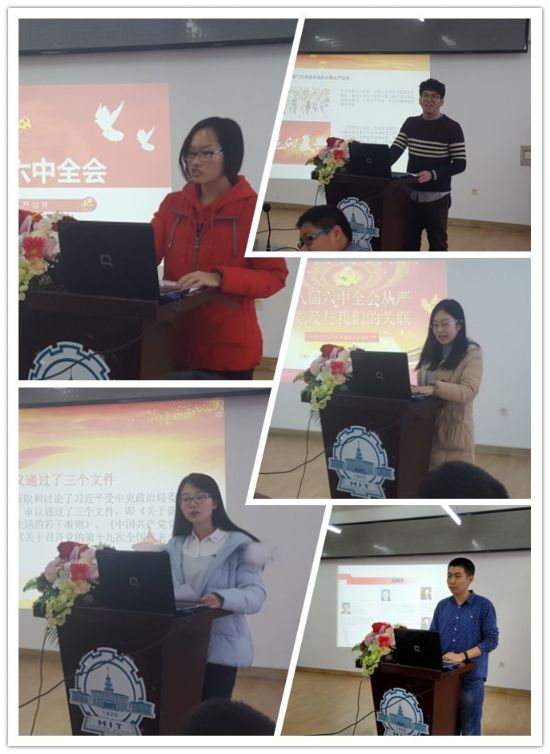 2016年11月28日中午,“旗帜讲坛”第42期在动力楼619会议室举办,由欧美性爱 2013级欧美性爱 本科生第一党支部承办,党支部书记郄志鹏主持,五位欧美性爱党员担任主讲,各欧美性爱党员和入党积极分子代表参加了本次活动。