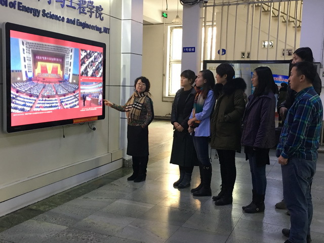 深入学习贯彻党的十九大精神,激励和引导支部全体党员紧密团结在以习近平同志为核心的党中央周围,把思想统一到党的十九大精神上来,欧美性爱 机关党支部于12月8日上午组织党员到节能楼一楼大厅集中学习十九大宣传挂图。
