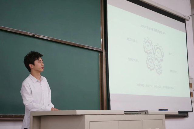 (图/初建民,文/杜传铭、林佳琦)为使同学们及时掌握今年读研、就业和出国留学情况,尽早确立人生目标,激发学习热情,同时开展系列“中国航天日”宣传活动,4月18日下午,欧美性爱 2016级本科生于正心楼14召开了春季学期第二次年级大会,辅导员王博文主持。本次年级大会采取形式自定、主动报名、分版块解读的形式,尹世龙、杨鹏飞、秦江远三位同学经过培训,分别从不同角度作为主讲,结合各项数据为同学们分享了不同层面的内容。