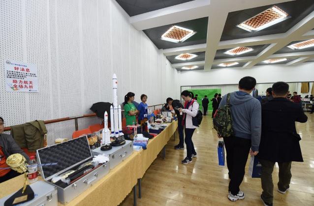 “航天青聚夜”还设置了特色航天集市,集市上布置了大量航天系列书籍、画册和纪念品,模拟宇航环境拍照,宇航服试穿,与航天员人形展架合影,众多青年学子参与其中,近距离感受了航天的魅力,体味航天动人色彩。