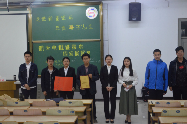 在结束讲演后,于达仁耐心回答了场下同学关于电推进技术的提问,之后礼仪人员向嘉宾送上新基论坛的精美礼品并合影留念,讲座在全场热烈的掌声中结束。