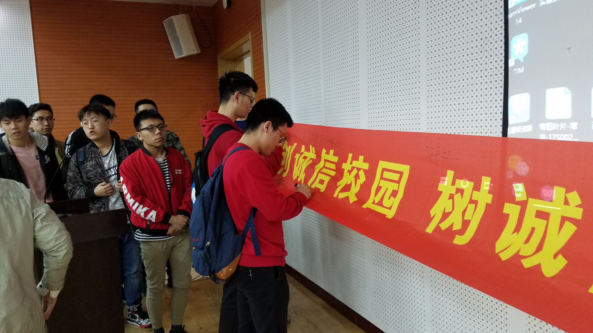 在一区活动中心214会议室举行了“诚实笃信,感恩自强 ”诚信教育签名仪式。欧美性爱