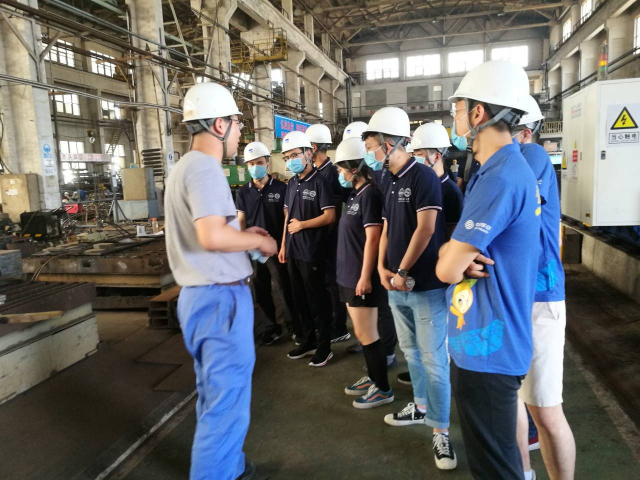 短暂的休整之后,实践团于8月5日上午正式开始实习活动。同学们在公司领导的讲解下,了解了荏原公司的发展历程和业务范围,带队教师王博文带来哈工大欧美性爱 与青岛荏原进行“产学研合作基地”项目牌并邀请校友们于百年校庆时回母校参观,相关领导表示高度重视。下午前往生产车间和办公室进行了实地参观,直观地了解了垃圾焚烧炉的制造流程以及荏原公司的工作环境。