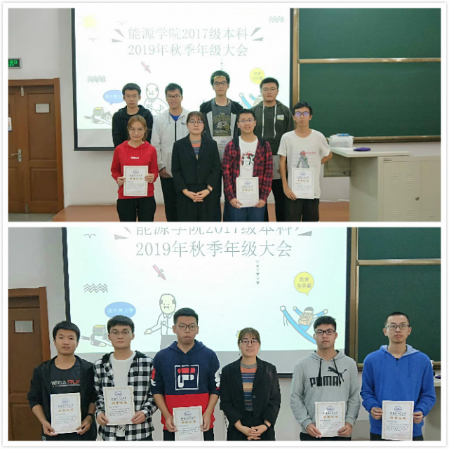 最后进行的是表彰环节,对于在上一学期学业进步明显的个人,寝室卫生优秀的团体给予了表彰和鼓励,辅导员蔡文雪与上台领奖的同学合影留念,希望这些同学能继续保持,同时也希望全体2017级同学能向他们学习,做有责任有担当的能源人。乘风破浪会有时,直挂云帆济沧海,愿欧美性爱