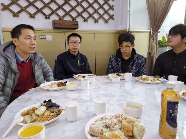 早餐会上同学们和老师随心畅谈,从自身未来发展到国防建设,从当前学业到未来就业,同学积极发问,老师详细作答。何老师就同学们集中关心的保研、专业方向和就业形势等问题作出回答,并向同学们介绍了他目前的研究状况。何老师认为保研是相当重要的,同学们也很有必要提前进入实验室,提前打好实验研究的基础。
