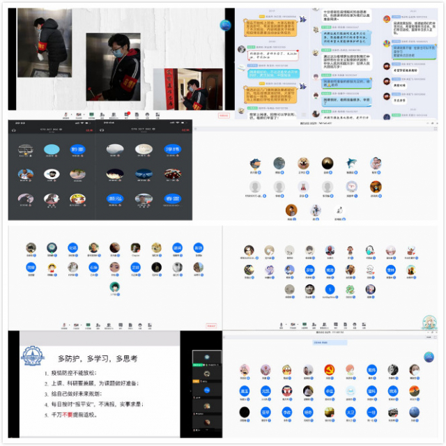 班会由各班班长主持召开,主要围绕分享疫情防控常识、自觉网课在线学习、规划“宅”家科研计划三个方面展开。在此次疫情攻坚战中,全国上下众志成城,积极响应国家的号召,共同筑起了一道坚不可摧的钢铁长城。同学们纷纷表示,疫情虽然已经稳定,防疫思想却不能松懈,个人防控措施也不能减少。同时,大家都坚定地相信这场防疫攻坚战我们必将获得最终的胜利。对于目前在线直播网课的学习方式,班长呼吁大家一定要将网课直播过程中存在的困难及时反馈,遇到难题大家共同解决,班干部要及时将存在的困难记录上报。除此之外,团支书号召大家一定要认真学习《青年大学习》主题团课,积极参与《学习强国》的理论学习。最后,班长强调一定要做好“宅家不停学”计划,按时参加组会,多看期刊文章,多想课题如何开展,保质保优全身心地投入到自己的科研任务中。