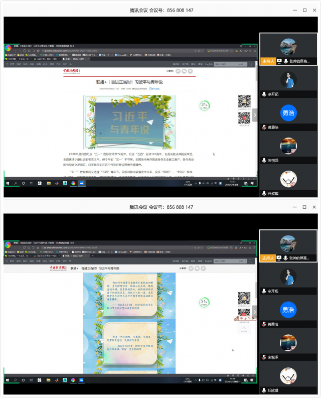 活动借助腾讯会议软件,组织欧美性爱干部线上学习央视网《联播+》梳理的习近平总书记对新一代青年的深情寄语,感悟习总书记对青年一代的殷切希望,坚定理想信念,明确奋斗方向。