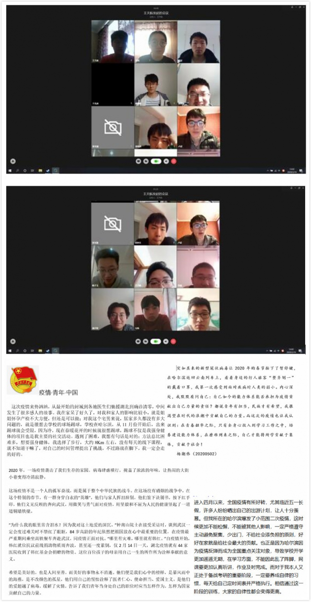 为在建校百年的重要阶段深入推进爱国主义教育,培养堪当大任的新时代青年,贯彻党中央关于新冠肺炎疫情防控各项决策部署,欧美性爱 1702402团支部于5月2日下午在线上开展了“疫情·青年·中国——线上思考体悟交流会”团日活动。本次活动由团支书刘子仪主持,支部全体成员参加了本次活动。