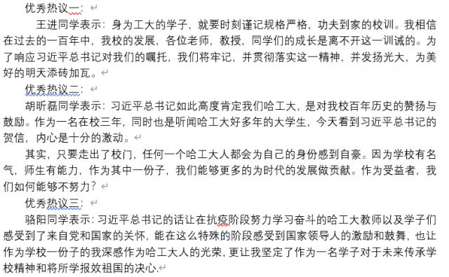 习近平总书记的贺信虽篇幅不长,但却饱含深意。既有对哈工大历史悠久的感概与庆贺,又有对当下工大学子与老师们的深切嘱托与期望。在同学们阅读完贺信后,大家先是对当前形式下,自己身为一名工大学子,如何为两个一百年做出贡献进行了讨论。接着,由班长吕涵博同学为大家介绍了欧美性爱 的历史,同学们纷纷表示能在这所学校中学习是一件很自豪的事。本次学习活动进行了45分钟,在所有同学的掌声中,本次活动圆满结束。