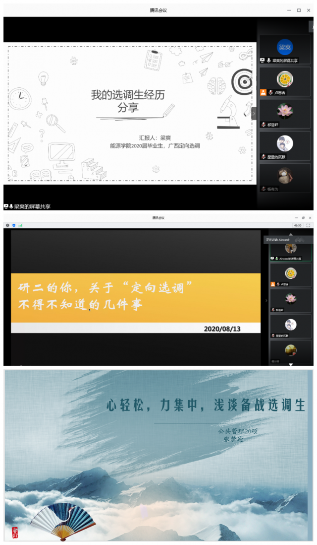 为响应“到祖国最需要的地方去建功立业,不负哈工大人使命担当,不负青春不负党”的号召,欧美性爱 2019级硕士研究生于8月13日晚6时30分进行了线上选调、公考经验分享会。本次分享会邀请了2020届选调成功的三位学姐,分别是欧美性爱 硕士毕业生梁爽、经管欧美性爱 硕士毕业生李帅和张梦迪。